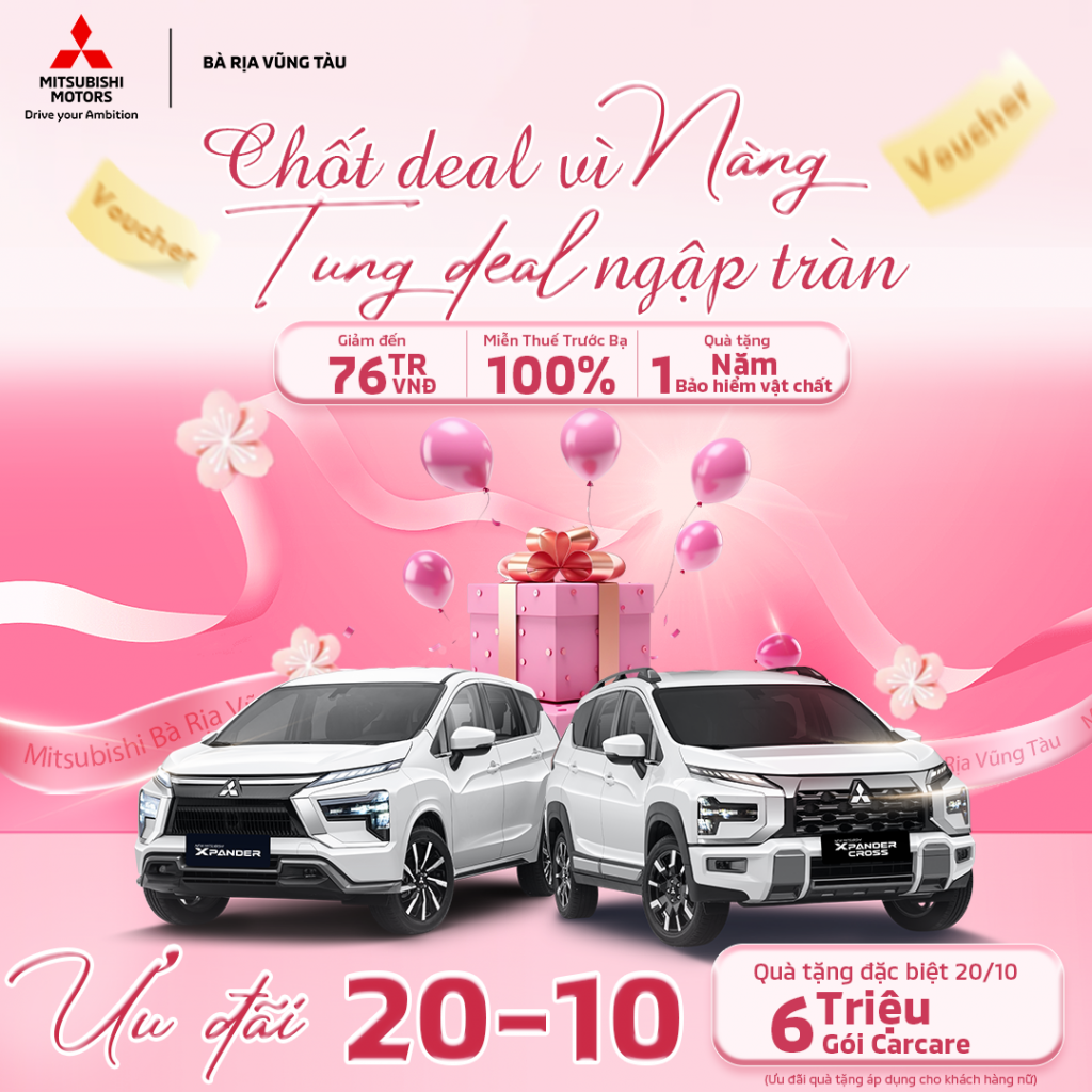 Chào mừng ngày Phụ nữ Việt Nam 20/10, Mitsubishi Bà Rịa Vũng Tàu gửi đến Quý khách hàng chương trình ưu đãi đặc biệt – thay lời tri ân đến một nửa thế giới đầy yêu thương